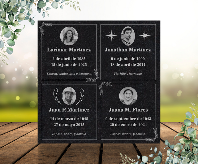 Aquí encontrarás lápidas y placas conmemorativas, diseñados para honrar a tus seres queridos de una forma especial y duradera.