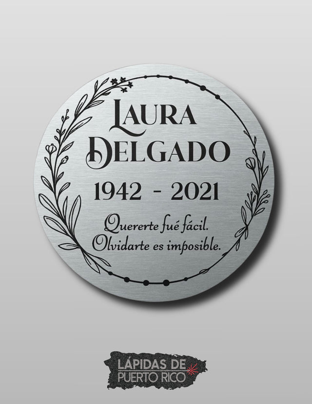 Placa Conmemorativa Redonda con Ramas Florales | Acrílico Metálico