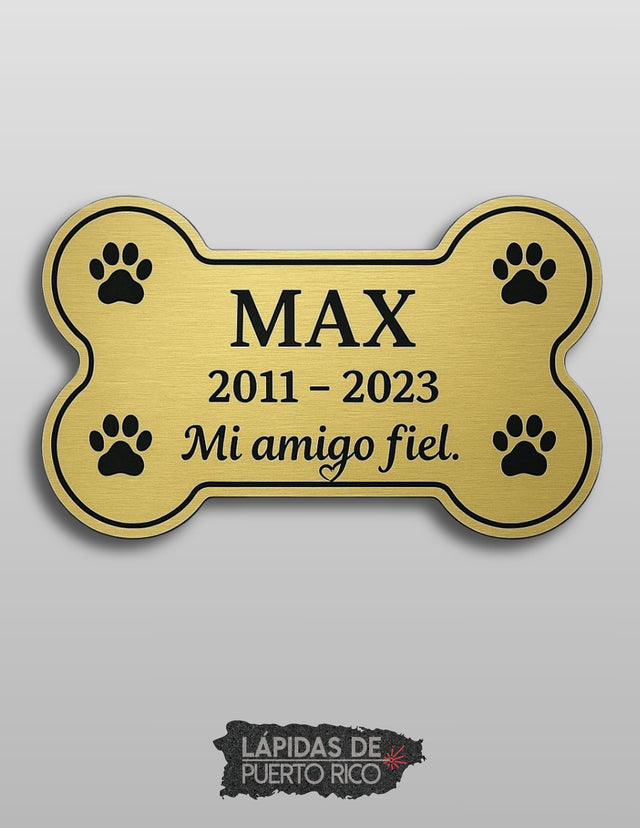 Placa Conmemorativa en Forma de Hueso – Mascotas | Acrílico Metálico Dorado