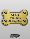 Placa Conmemorativa en Forma de Hueso – Mascotas | Acrílico Metálico Dorado